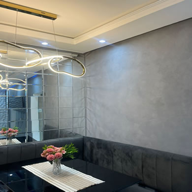 Texturas e grafiato: oferecemos diversas texturizações que trazem profundidade, estilo e personalidade às superfícies, com técnicas modernas e acabamento uniforme.